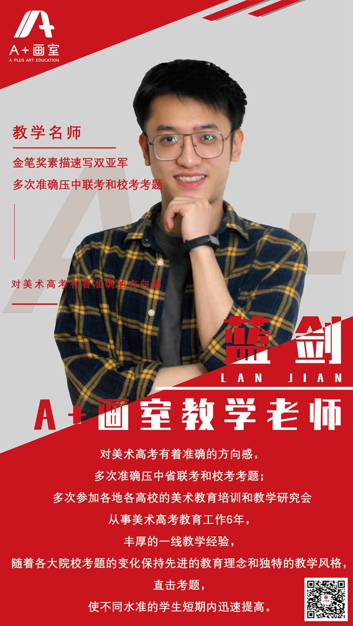 蓝剑老师很善于掌握学生心理,有些学生比较腼腆,某个技巧掌握不好羞于表达,又一筹莫展,在蓝剑老师的课堂上出现过很多这种问题,但是蓝剑老师并没有忽略而是一次次的示范,在示范的同时蓝剑老师又很详细的讲解手的结构和速写画手的方法,学生听的非常认真心里也十分温暖。蓝剑就把这类学生列为重点,及时掌握学生的学习进度,一发现问题就立马解决;蓝剑老师的认真负责的教学态度也被学生看在眼里。蓝剑老师全身心的投入教学上,经常在下课后给学生补课,特别是在集训后期,为了让学生考试更有把握,每天都会和学生呆到凌晨两三点。遇到有问题的,蓝剑老直接就给学生单独讲解示范,同时把一个学生的问题也告诉其他学生,在以后的学习中大家都能避免。在教学六年里,蓝剑老师认真负责的态度一直以来都被学生喜爱,被家长赞赏。蓝剑老师虽然看起来年轻,但是在实际教学中,经验丰富教学特点也相当明确,帮助众多考生完成了“央清梦”和“大学梦”。对于很多零基础或者学的晚的同学,蓝老师给出了一些建议